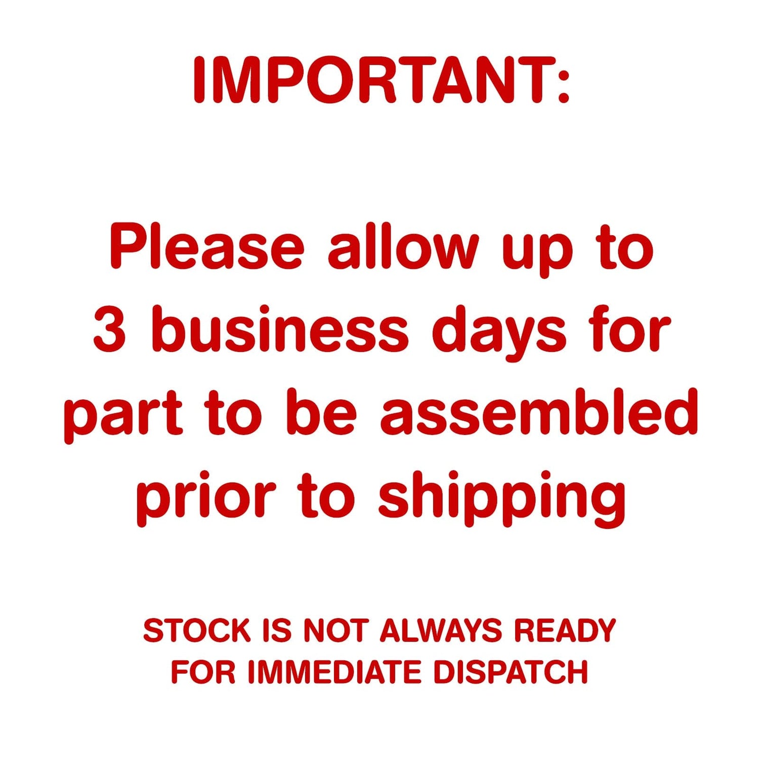 NOTE: Warranty starts from the date product is received; not from the date it is fitted or used.