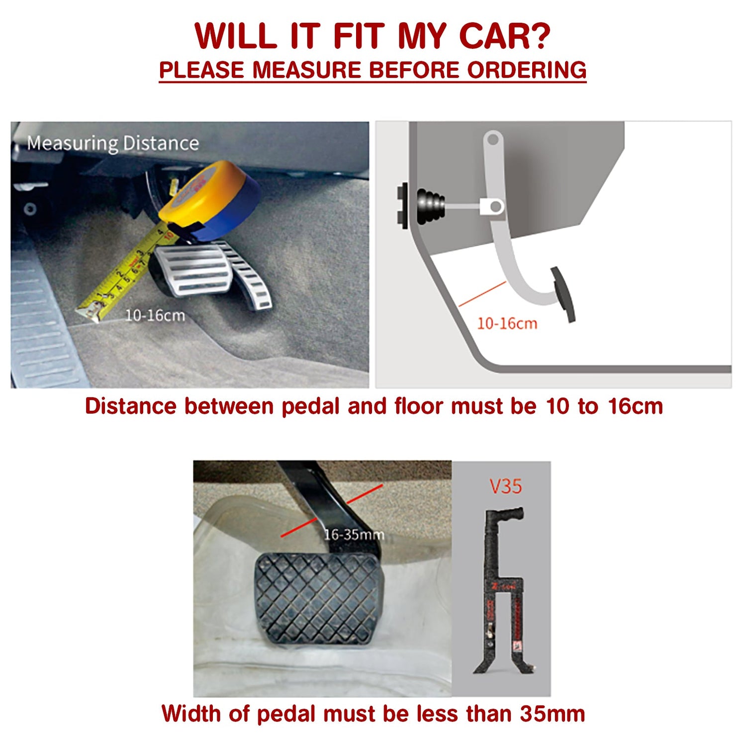 🔴 Could also be used on the vehicles clutch pedal, instead of the brake.
